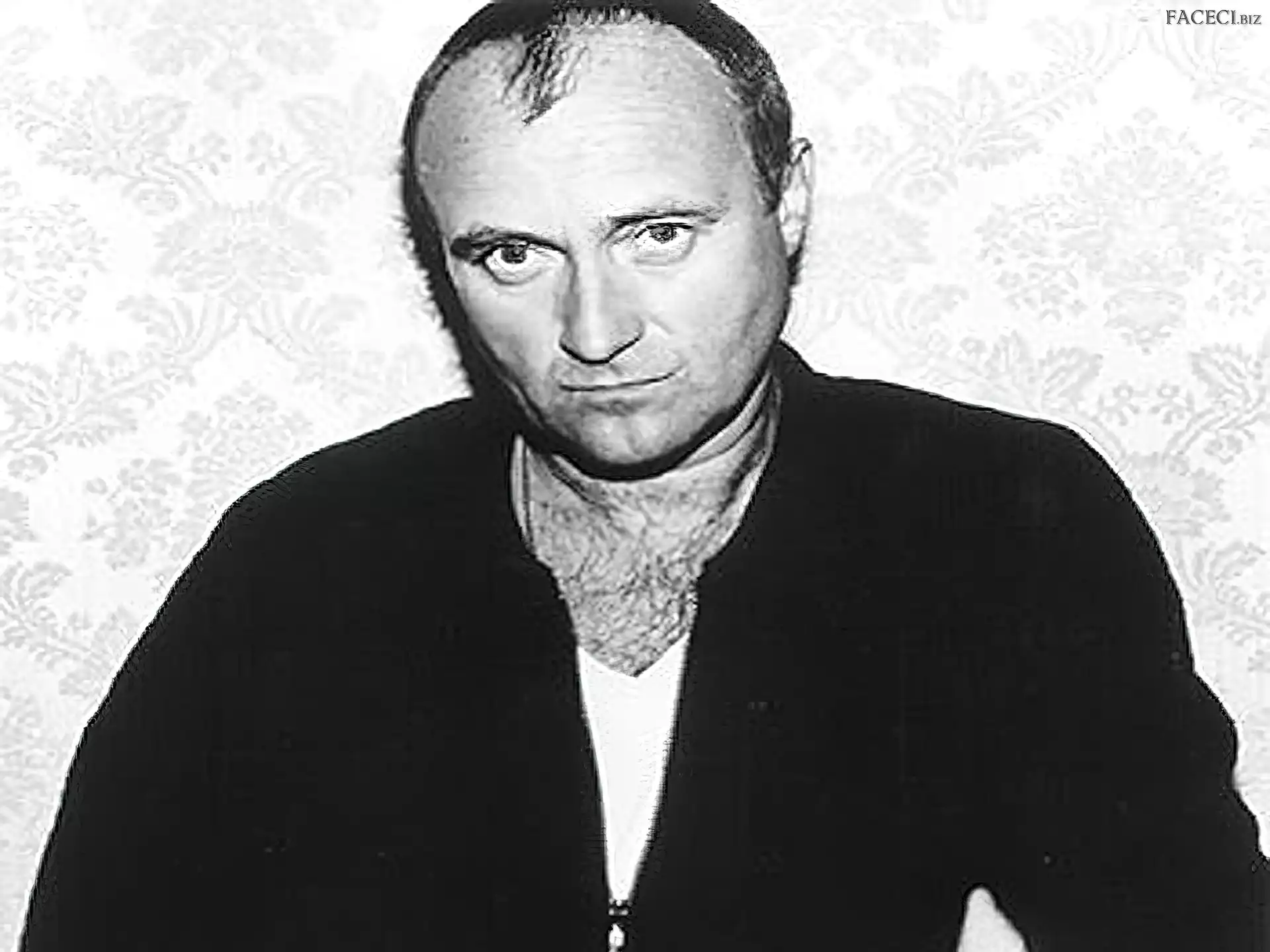 Twarz, Phil Collins Oczy, Phil Collins Philip David Charles Collins Podkoszulek, Phil Collins, Biały Philip David Charles Collins Mikrofon, Phil Collins Mikrofon, Phil Collins Gwiazda, Phil Collins